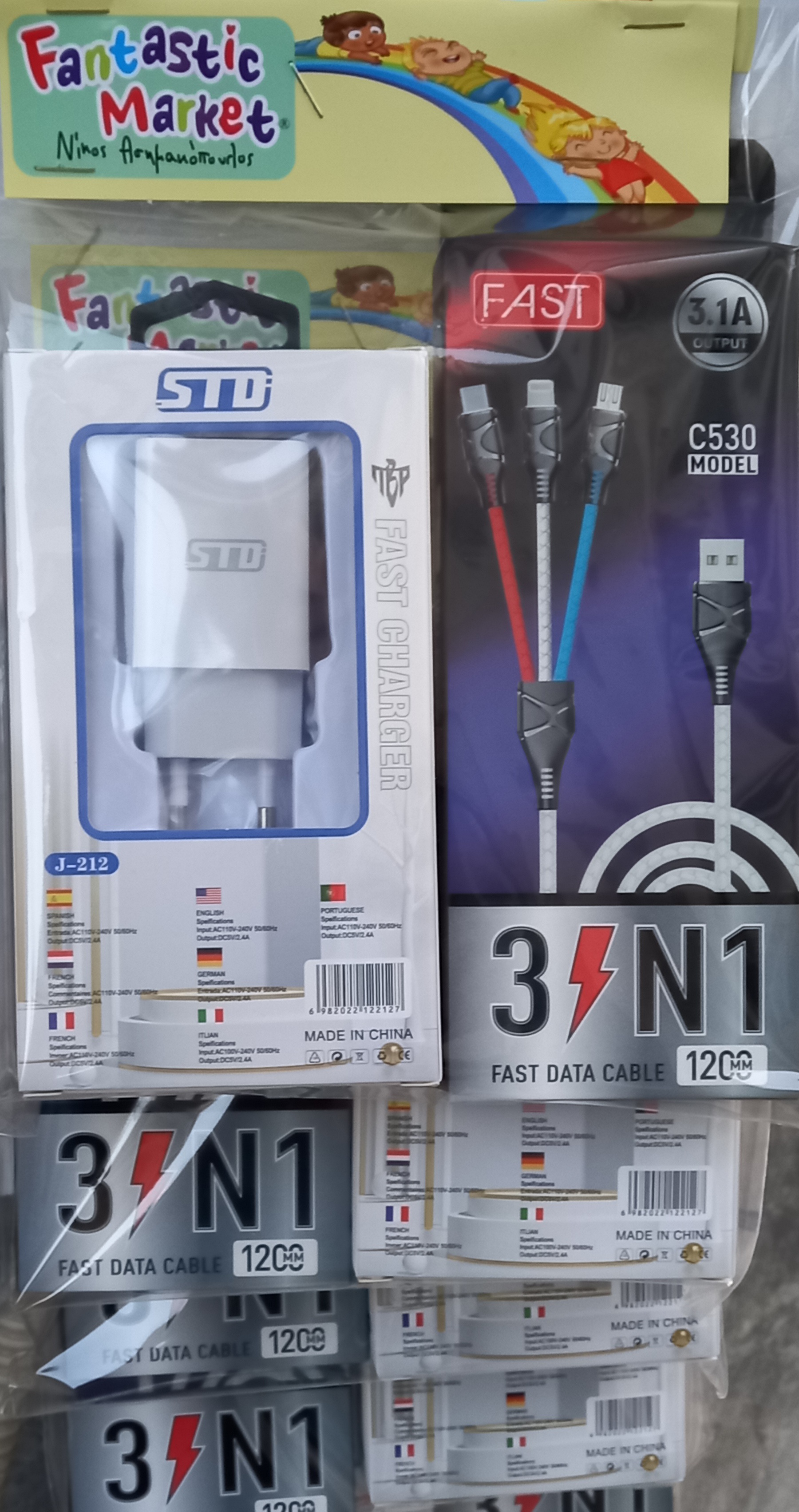 Αυτό το σετ φόρτισης περιλαμβάνει φορτιστή και καλώδιο 3 σε 1, σχεδιασμένο για γρήγορη και αποδοτική φόρτιση των συσκευών σας. Με δυνατότητα ταχείας φόρτισης 3.1A, ο φορτιστής παρέχει αξιόπιστη ισχύ, ενώ το καλώδιο 3 σε 1 επιτρέπει σύνδεση με διάφορους τύπους συσκευών (micro USB, USB-C, Lightning), προσφέροντας ευελιξία και άνεση. Το καλώδιο έχει μήκος 120 εκ., ιδανικό για καθημερινή χρήση στο σπίτι, στο γραφείο ή εν κινήσει. Ένα απαραίτητο αξεσουάρ για όσους χρειάζονται λύσεις φόρτισης πολλαπλών συσκευών σε μία μόνο συσκευή.