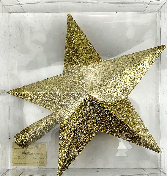 Δώστε μια ξεχωριστή λάμψη στο χριστουγεννιάτικο δέντρο σας με αυτήν την εντυπωσιακή κορυφή αστεριού, διακοσμημένη με χρυσό glitter. Το αστέρι προσθέτει μια ζεστή και λαμπερή πινελιά, δημιουργώντας μια αίσθηση πολυτέλειας και γιορτινής μαγείας στον χώρο σας. Η τέλεια επιλογή για να ολοκληρώσετε τη διακόσμηση με κομψότητα και στυλ.